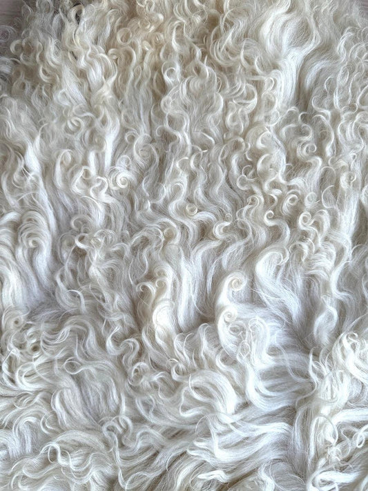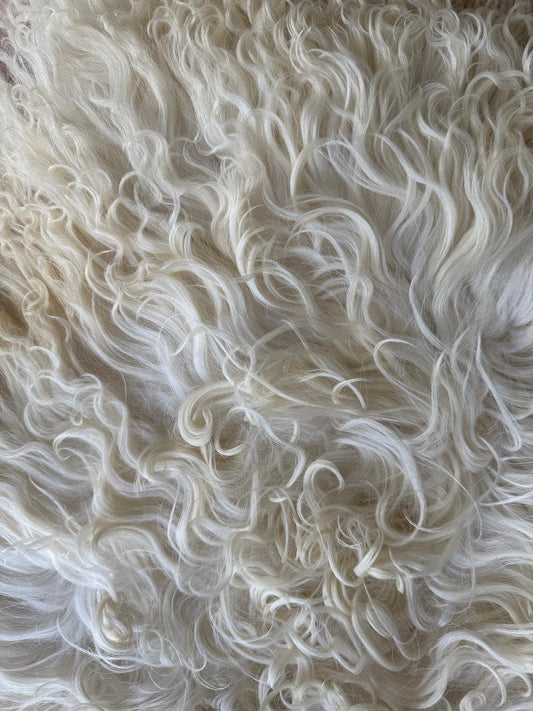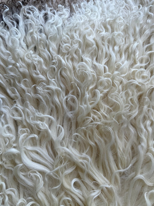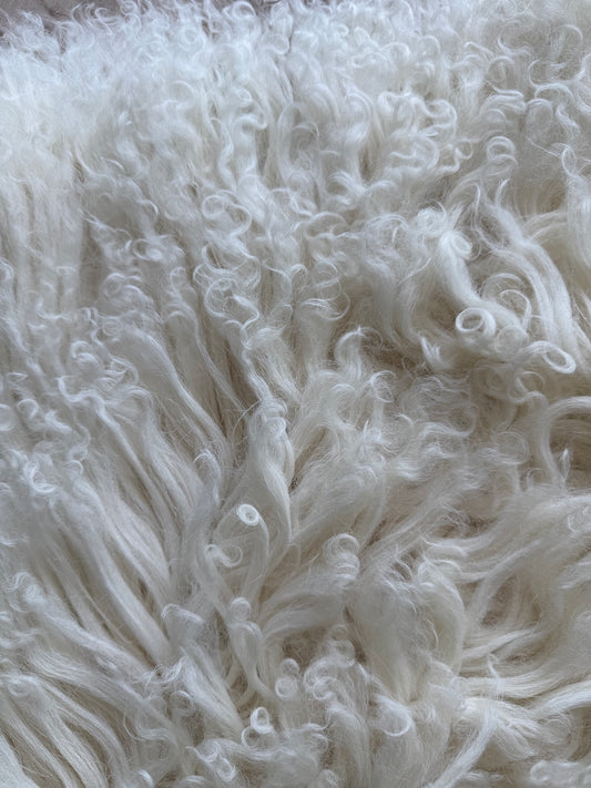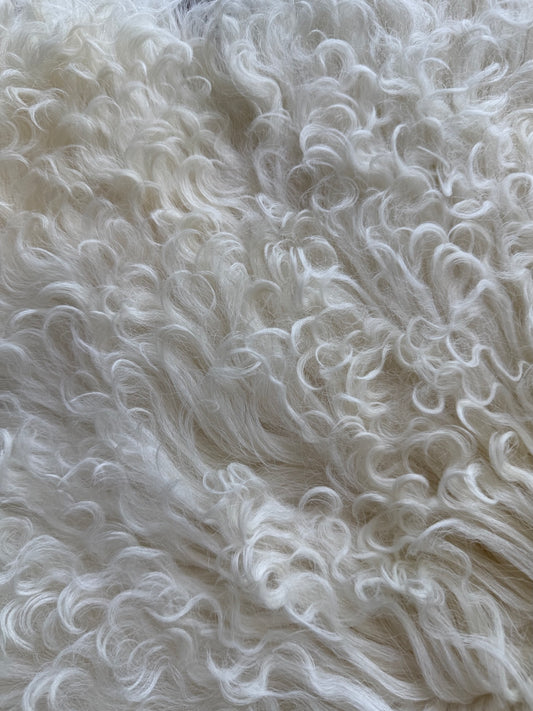 Vitt Lammskinn med VÄgig LÄng Ull (Nr28)