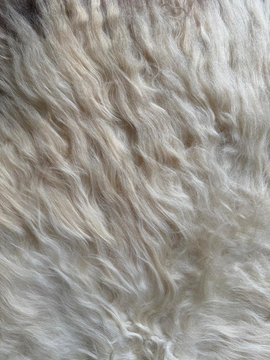 Beige Vitt Lammskinn med Mörkbruna Inslag - VÄgigt Ull (Nr125)