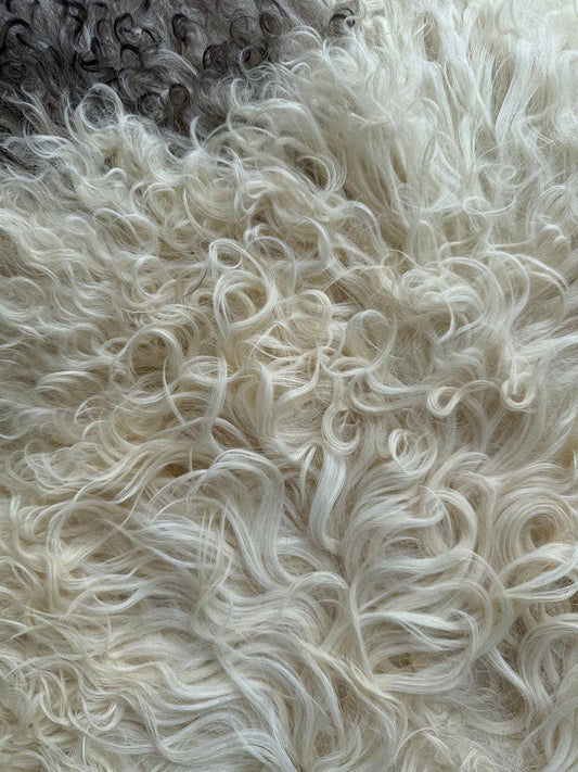 Lammskinn - Vitt med Svarta Inslag och VÄgigt Ull (Nr121)