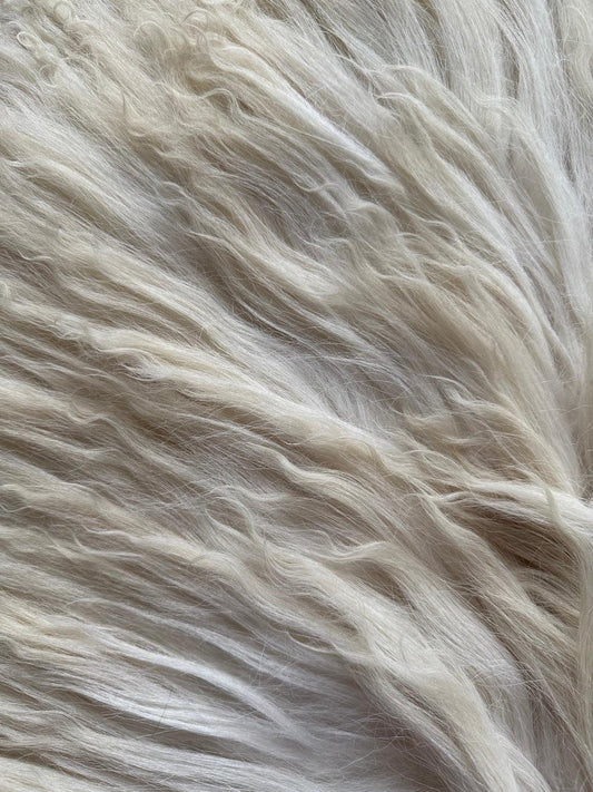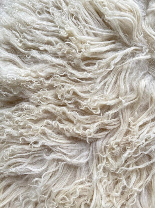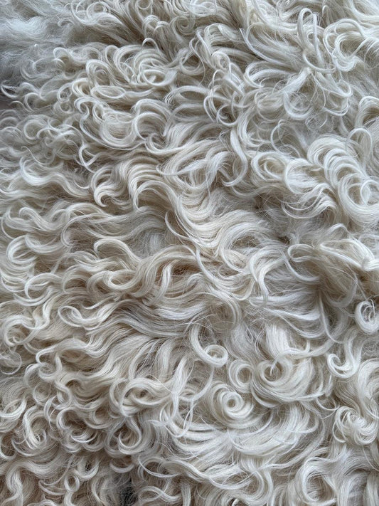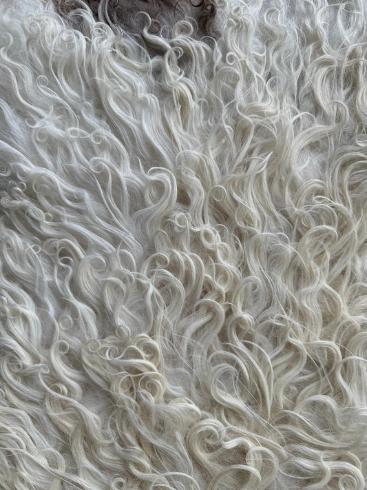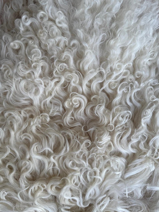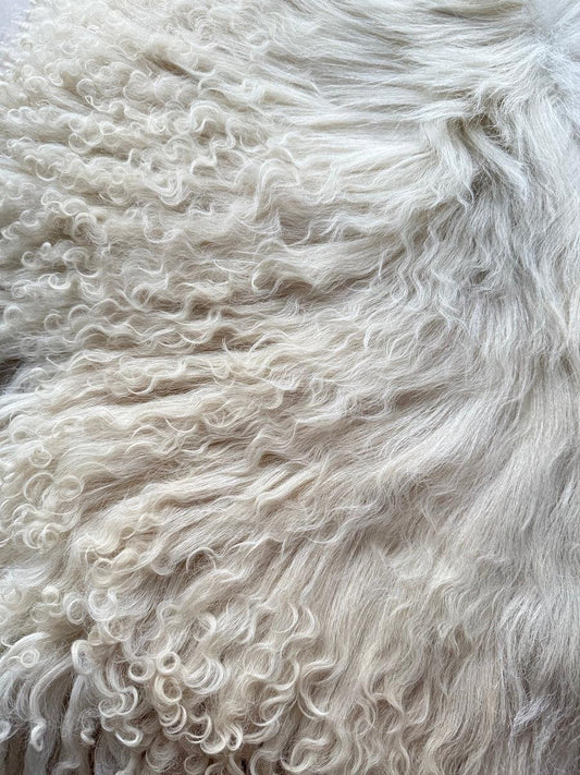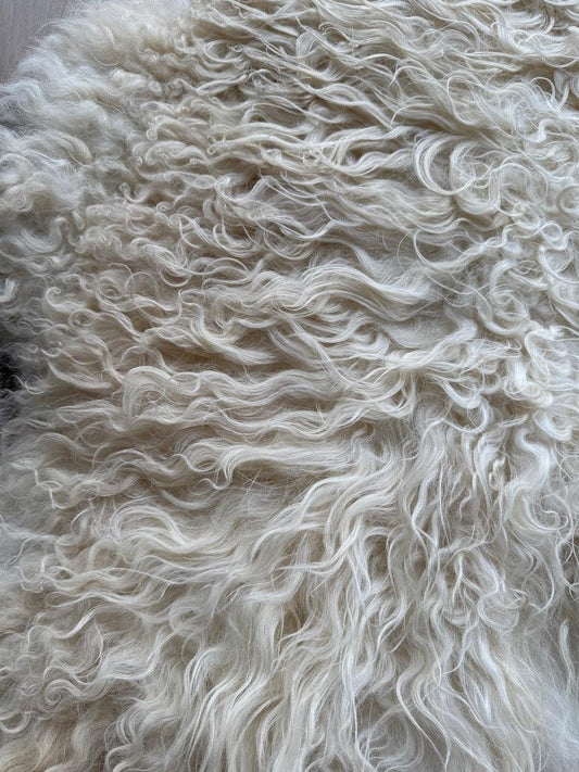 Vitt Lammskinn med VÄgig LÄng Ull (Nr28)