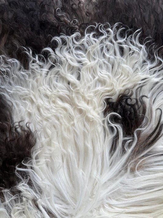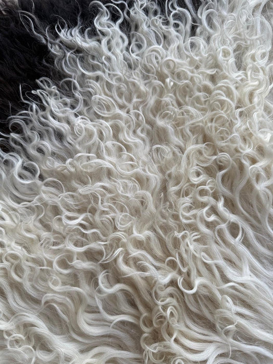 Vitt & Svart Lammskinn VÄgig LÄng Ull (Nr70)