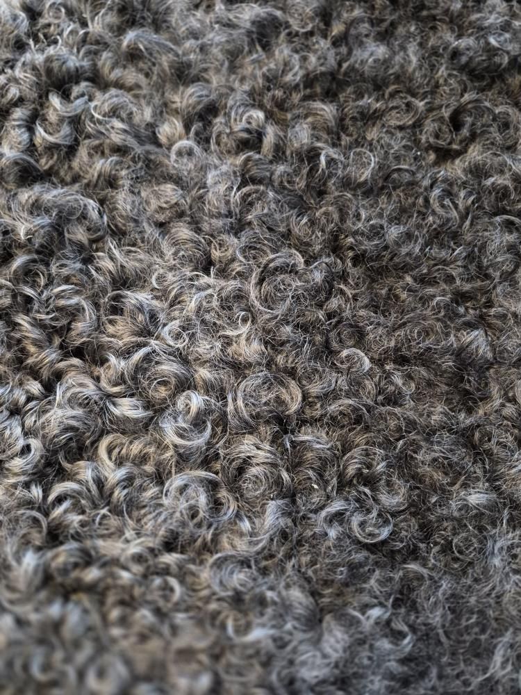 Detta lammskinn kommer frÄn gotlandsfÄr, en ras som Àr kÀnd för sina vackra, naturligt lockiga pÀlsar i olika nyanser av grÄtt. Lockarna Àr smÄ, tÀta och glansiga med en mjuk struktur som ger skinnet ett levande och exklusivt utseende. FÀrgskalan varierar frÄn ljusare silvergrÄ toner till mörkare grafitgrÄ partier.